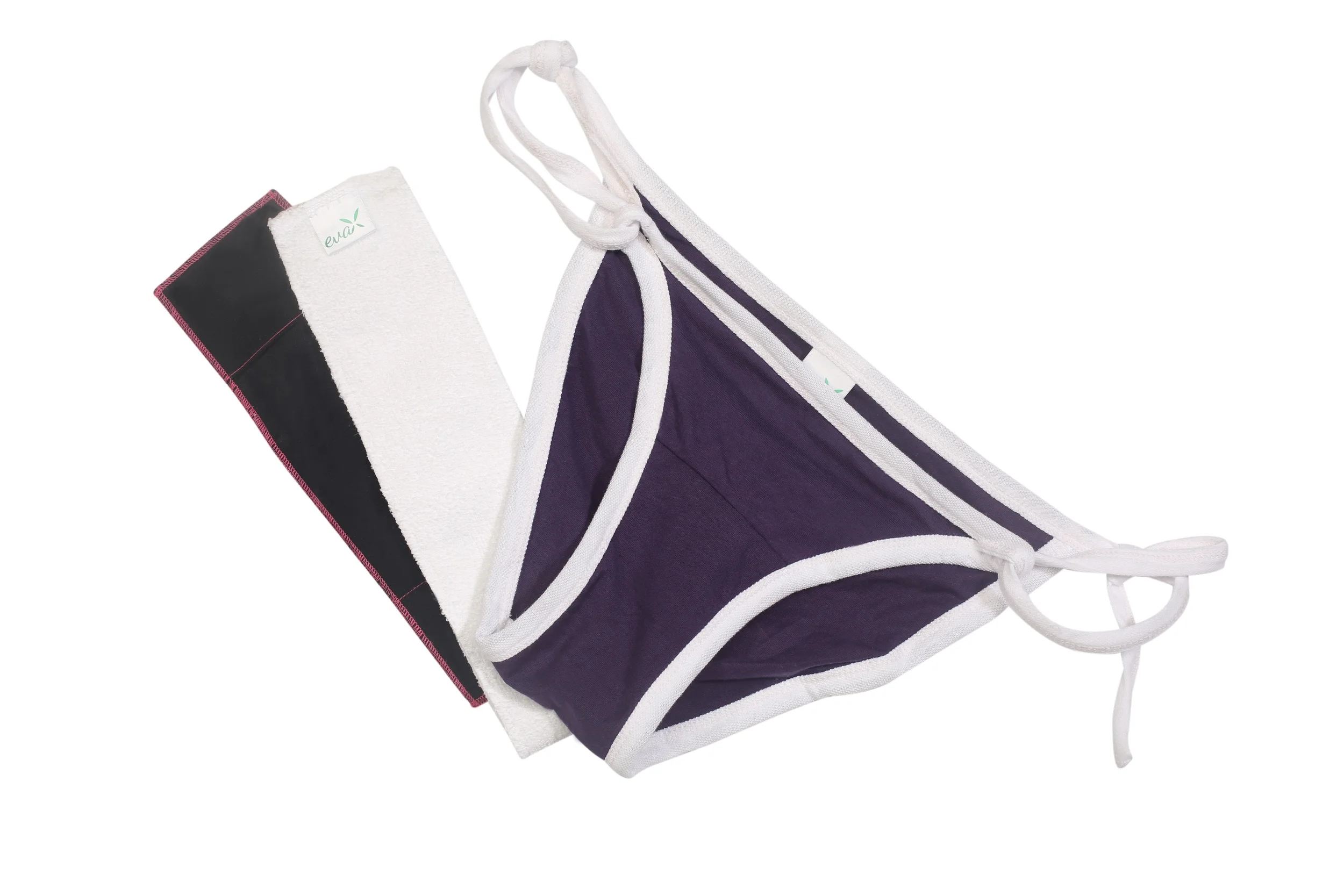 EVA Starter Packs contain 1pc one-size-fits-most tie-on, 1pc leak-free breathable shield, and 3pcs microfiber absorbent liners.