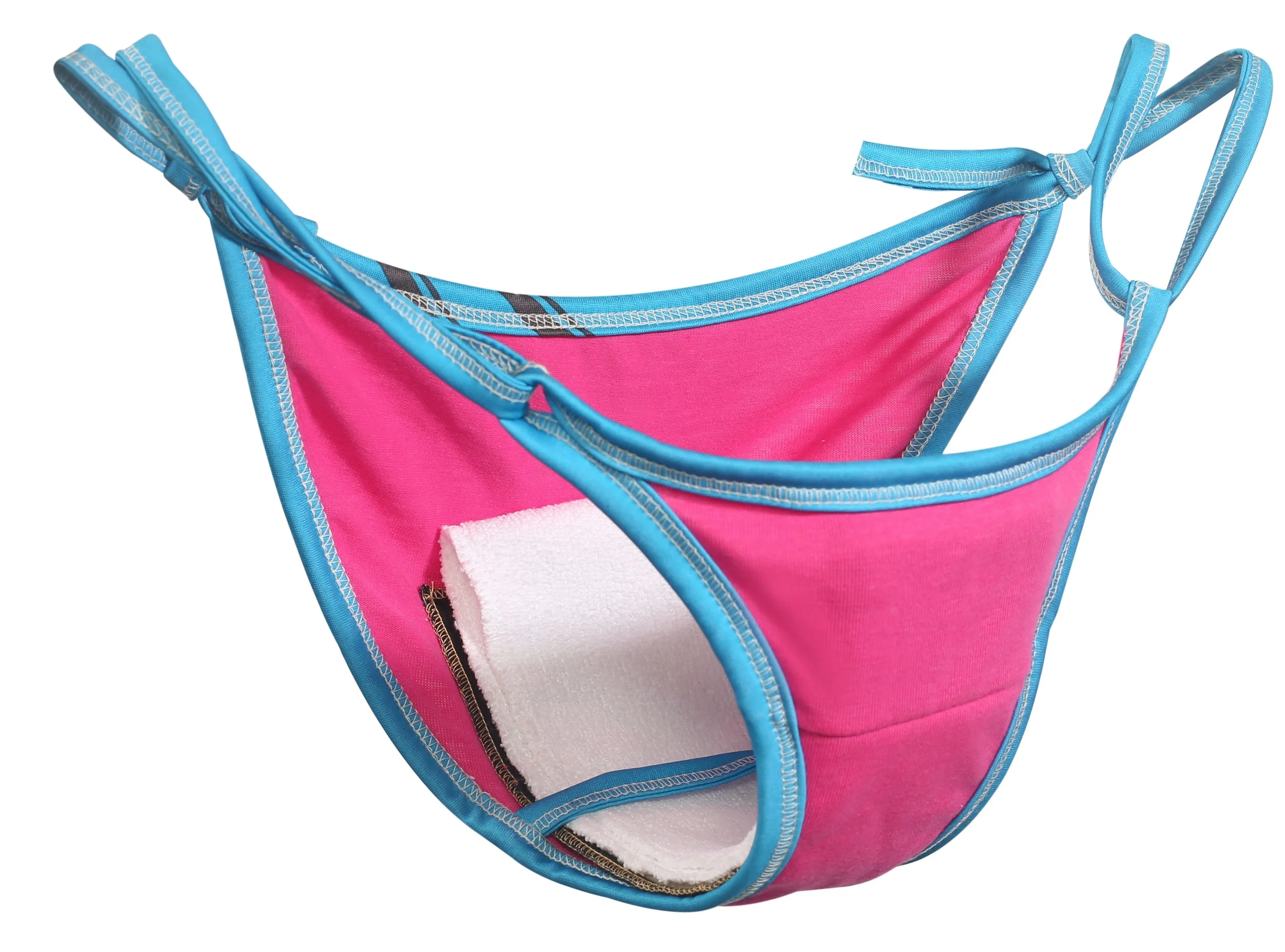 EVA Dignity Kits take care of a woman’s menstrual needs for up to 2-3 years, containing 2 pairs of one-size-fits-most tie-ons; 2 leak-free breathable shields; 6 microfiber absorbent liners, a carrying case, and 2 sealable plastic bags.